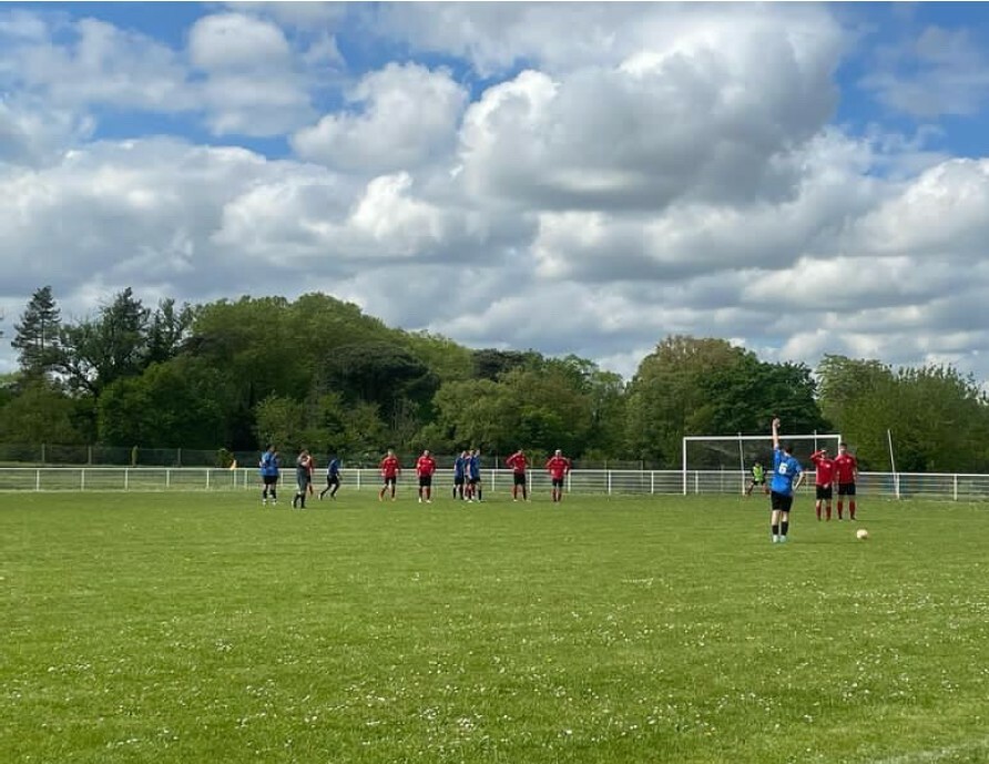 suite à un centre repoussé par Yohann De Sousa, le ballon arrive dans les pieds d’un bleu étrangement seul, qui arme sa frappe à l’entrée de la surface et égalise. 1 - 1.