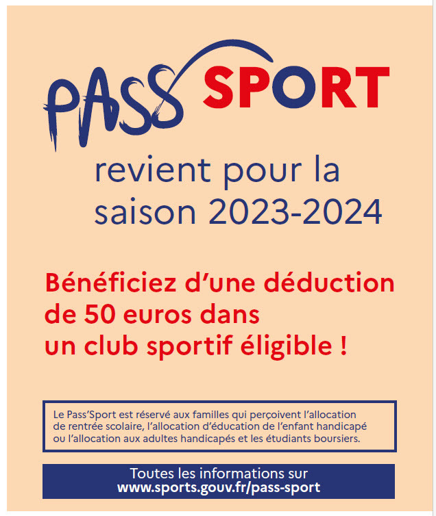 Pour les enfants concernés, n'oubliez pas que le Pass'Sport est renouvelé pour la saison 2023-2024, l'EJLSS étant un club sportif éligible !